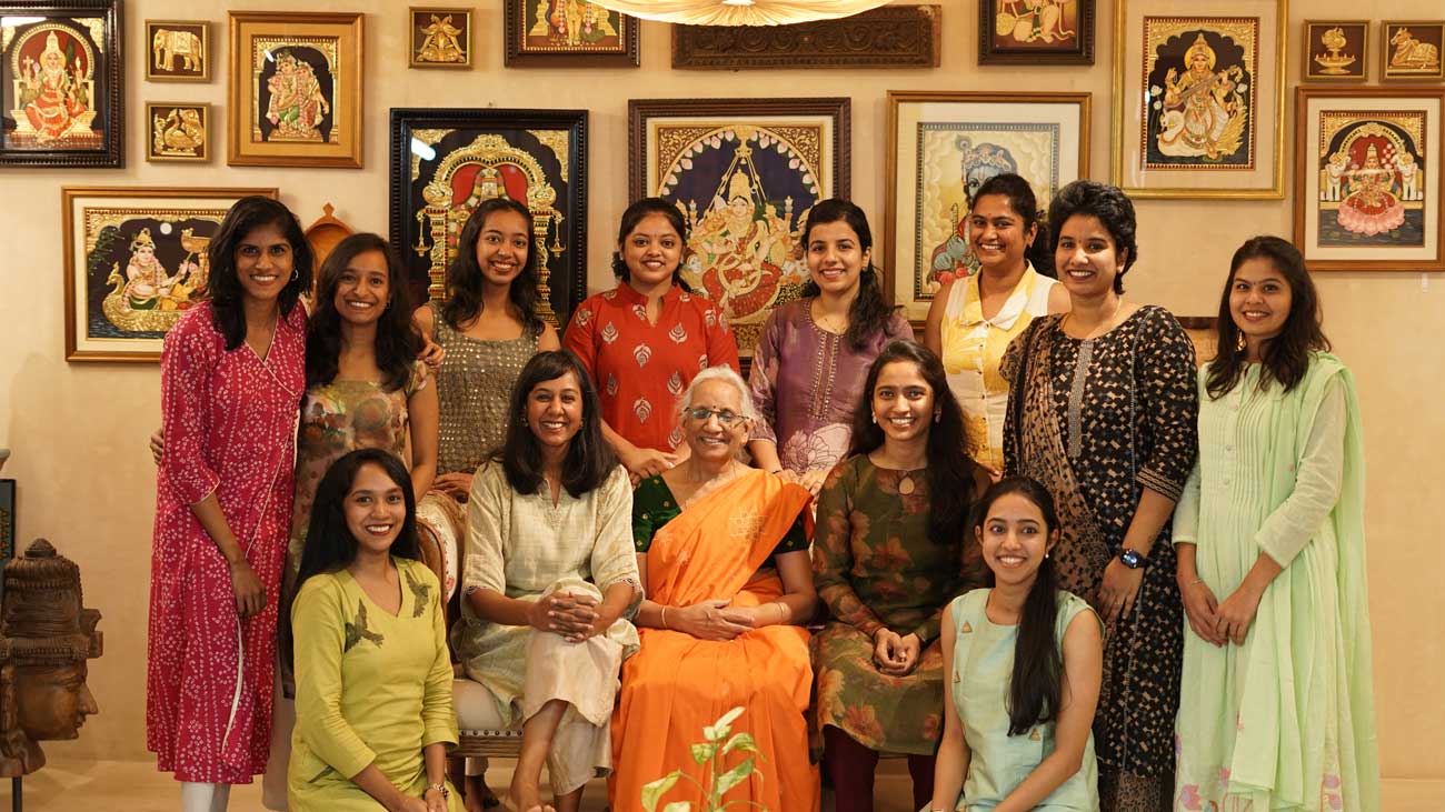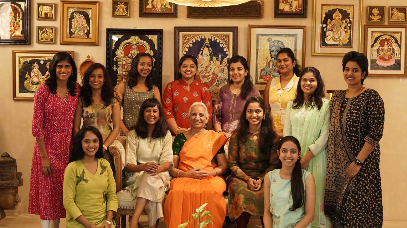 At Tanjore Collective, we've trained over 3,000 students across 100+ batches — in our Basavanagudi studio and through live online classes that reach students across India, the USA, UK, and beyond.