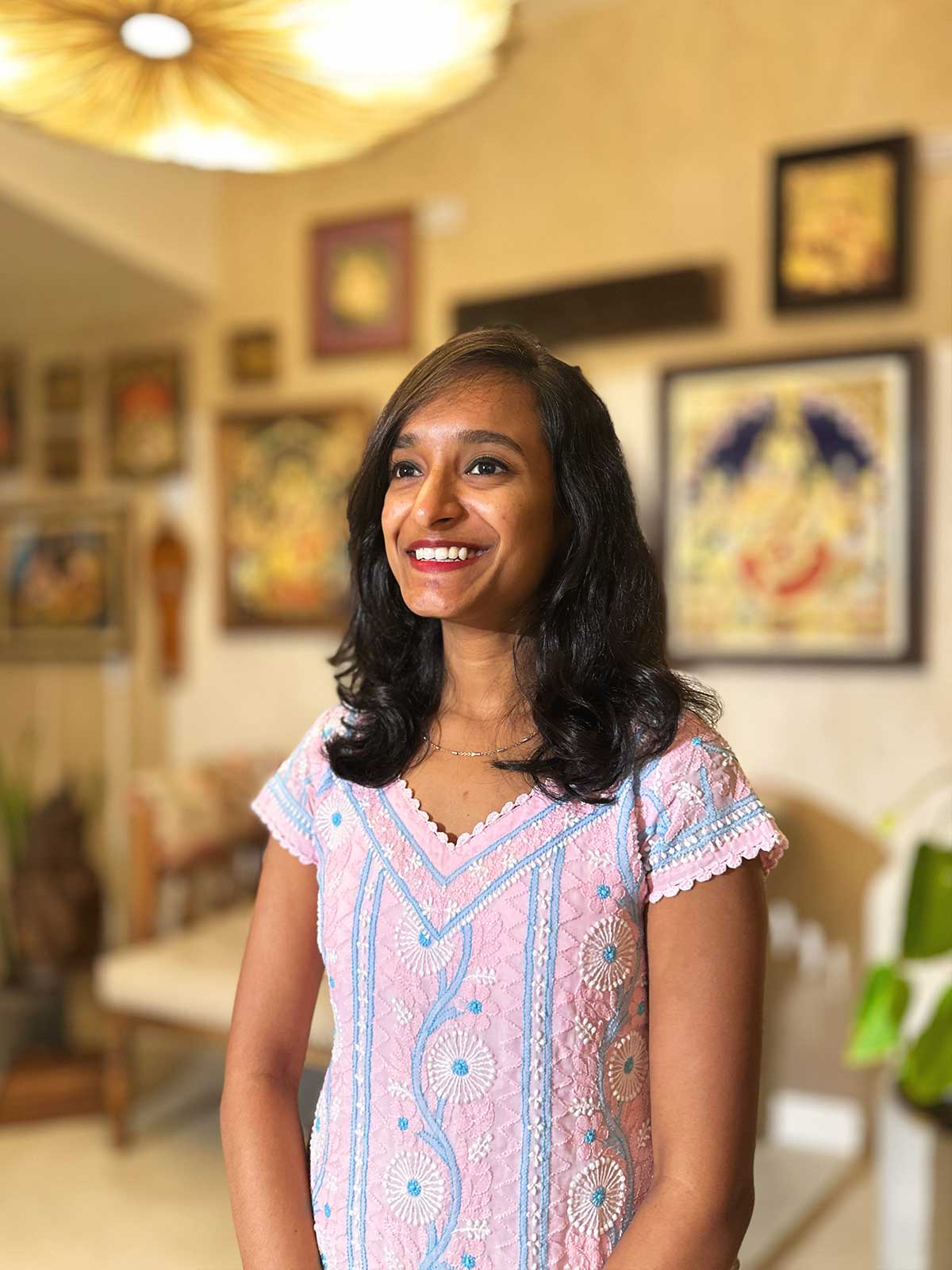 Spurthy GB teaches with warmth, curiosity and an instinctive ease with the art. Friendly and approachable, she encourages students to ask questions freely, offering clear guidance and thoughtful solutions that help them move past uncertainty and trust both the process and their own creativity.